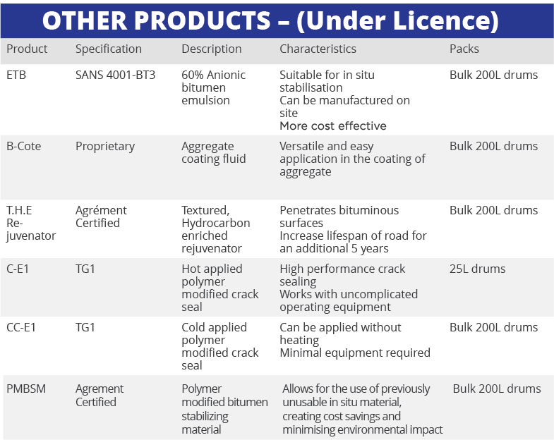 Siluno Group supplies in bulk, and drums, all grades of road binders from our main plant in Laezonia. The plant is constantly being upgraded in compliance with COSHEC. All conventional products supplied are in accordance with the relevant specifications.